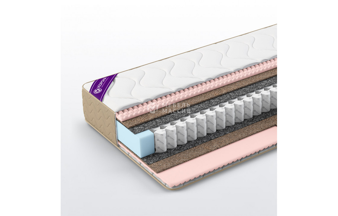 - Кокосовая койра 10 мм ? Кокос - переплетенные волокна кокосового ореха, растительного происхождения. Исключительные свойства кокоса в прочности, упругости и гигиеничности. Материал придает жесткости матрасу. Обладает отличной вентилируемостью, устойчив к любой влажности и перепадам температуры, гипоаллергенный и долговечный.
